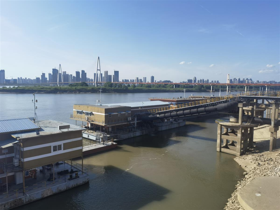 管道从岸边直通地下,深入江心约100米处进行取水,可以保障供水无忧。