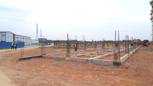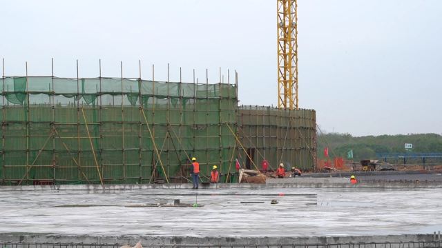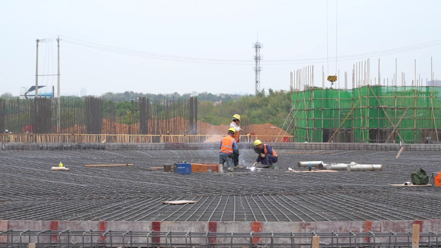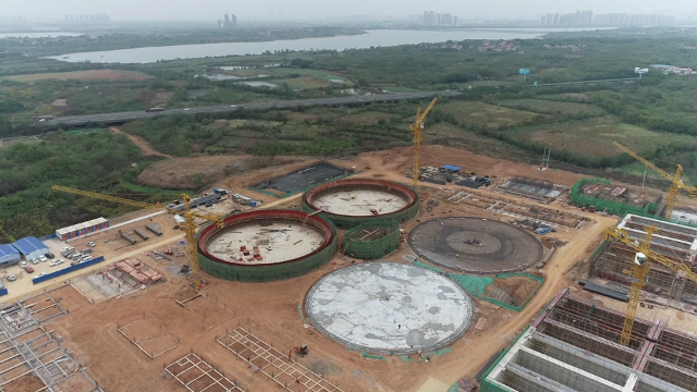 在江夏污水处理厂二期项目施工现场,记者看到,塔吊正来回穿梭吊装材料,一旁挖土机轰隆作响,工人们正分布在多个片区进行主体结构的施工,现场一派热火朝天的繁忙景象。