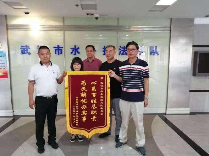 竹叶海社区党总支代表全体居民向市水务执法总队赠送锦旗。