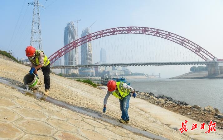 “目前汉江正值罕见低水位,正是护岸抢修黄金期,我们要尽快完成任务。”11月4日上午,硚口区水务局堤防科负责人张坚正在沿河大道宝庆闸口堤防上巡查修复工程。近日,在武汉市水务局统一部署下,武汉市各区水务部门正在抓紧当前枯水期,开展两江四岸堤防设施修复工作。
