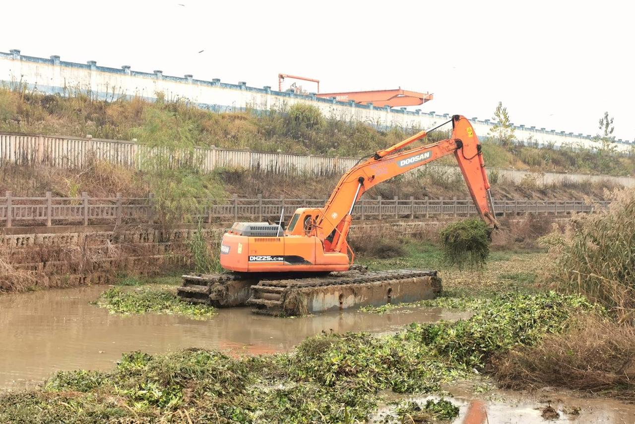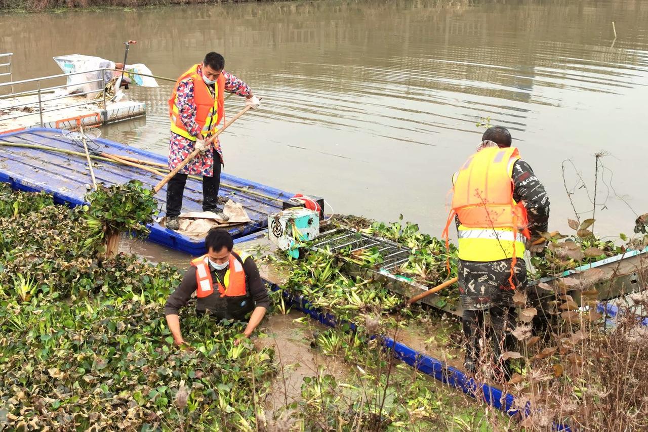 近日,寒潮来袭,武汉市的气温骤降,港内的水葫芦已经逐渐枯萎,一定程度上降低了打捞的作业难度。为最大程度清除水葫芦泛滥对港渠水循环带来的不利影响,江夏区水务和湖泊局,以河湖长制为依托,调集大型挖掘机1台,打捞船6艘,管护人员10余人,集中开展收尾打捞工作,预计将清理残余水葫芦80吨左右。