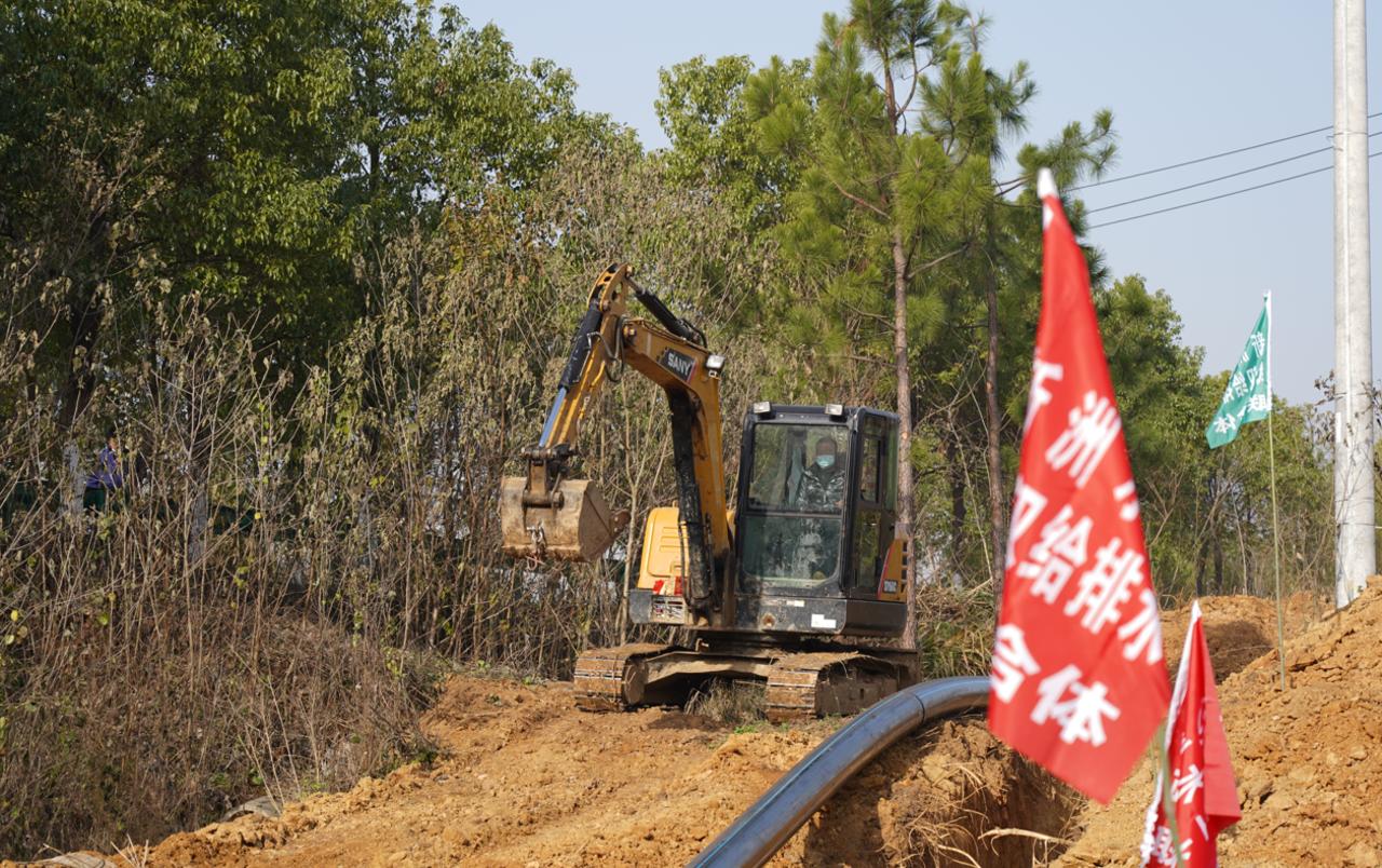 新洲区道观河水厂管网延伸工程项目是2022年新洲区政府重大民生实施项目,于2022年10月20日正式开工。整个项目从道观河的桥头延伸到四吴线,一直往徐古、潘塘、包括覆盖三店的部分地区,管网总长16.1公里,中途设有一座日处理水9600吨的加压站。项目目前已完成13公里管道铺设,预计于2023年春节前全部完工并供水。