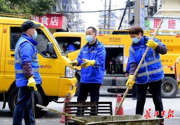14日,临近春节,大街上车水马龙,不少市民手里拎着年货。江汉区排水队质检员张猛也没闲着,依然和队员们走街串巷,抓紧疏捞易堵点。“马上到春节假期,把管道都清理好,免得过节给居民们心里添‘堵’。”