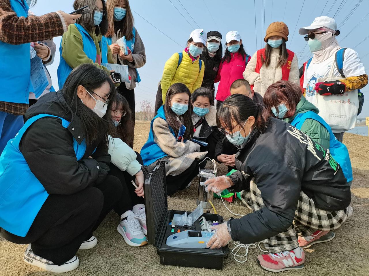 爱我百湖协会的专家还为同学们讲解了水质监测方法,志愿者们也化身“检测员”,记录下了黄塘湖目前的pH值、含氧量等数据,方便日后比对,及时有效地长期监测黄塘湖的水质情况。