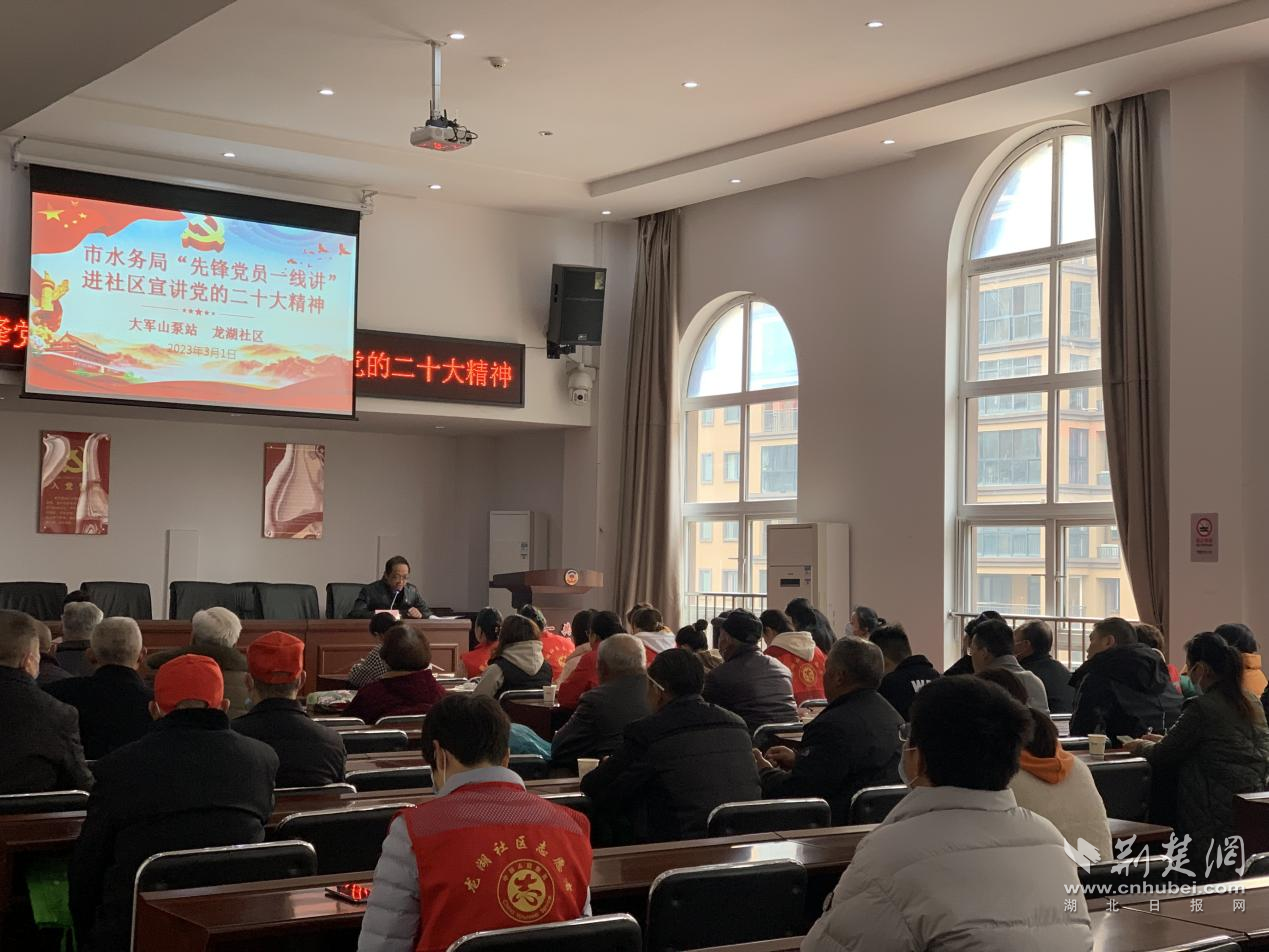 3月1日上午,武汉经开区龙湖社区联合共建单位大军山泵站共同开展“共抓长江大保护、宣讲党的二十大精神”的主题宣讲活动。来自市水务局先进典型和一线党员代表用大家听得懂,喜欢听的语言,把党的二十大精神讲到了大家伙的心坎儿里。
