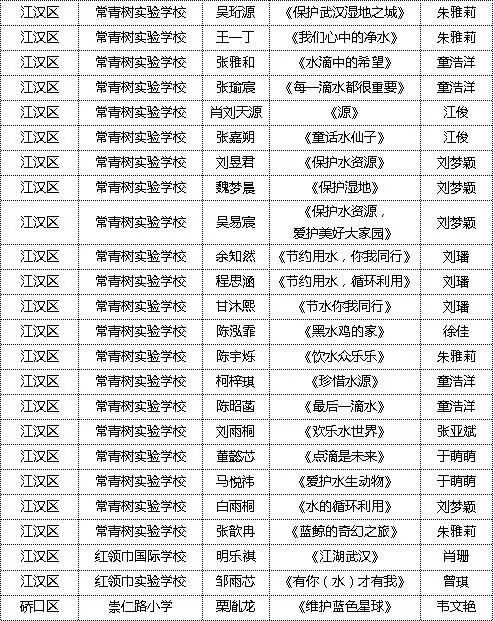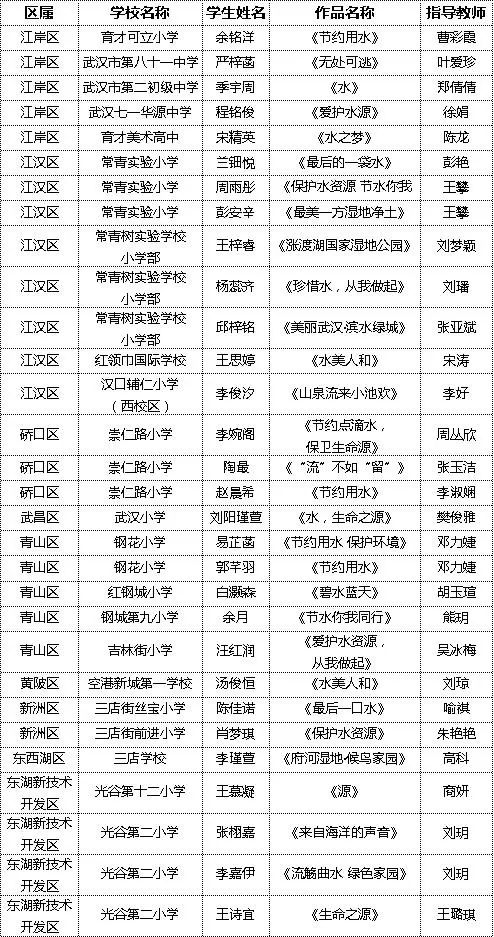 一等奖获奖作品将在武汉节水微信公众号、武汉教视微信公众号和抖音平台进行展示,部分作品经装裱后将在市节水科技馆等场馆进行展览,全面营造学生带动家庭、家庭辐射社会的节水宣传氛围。