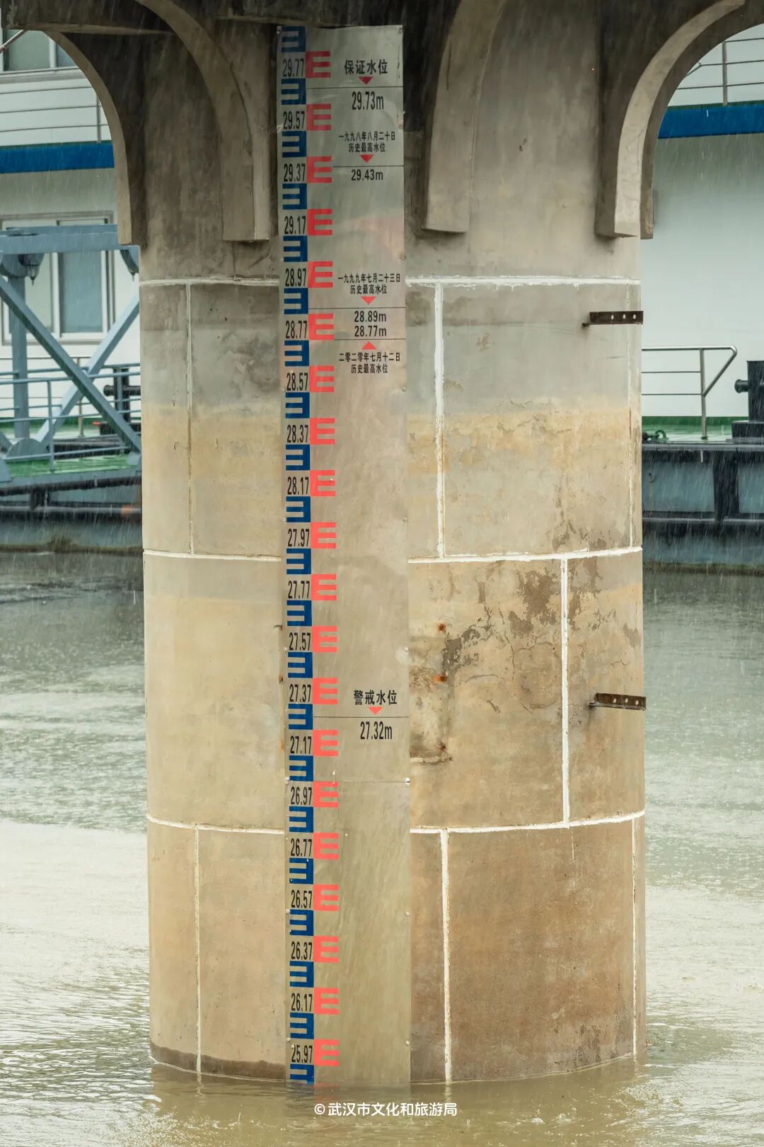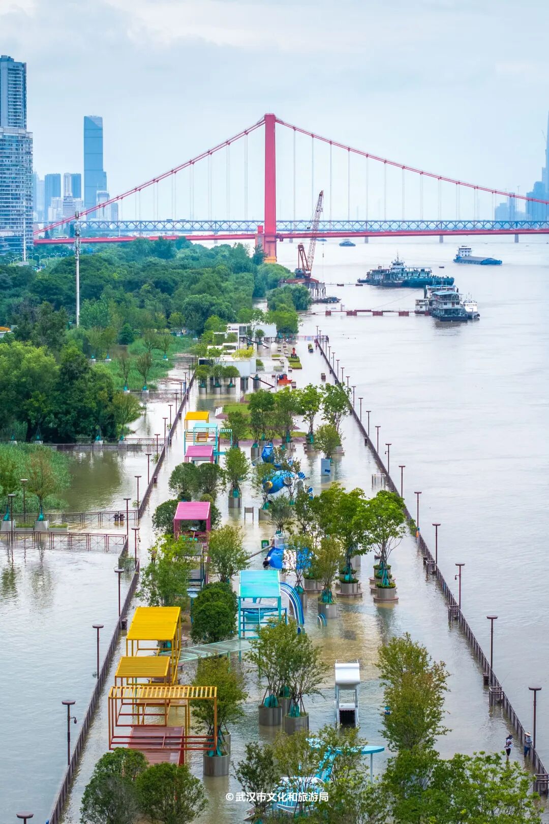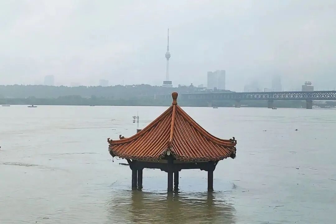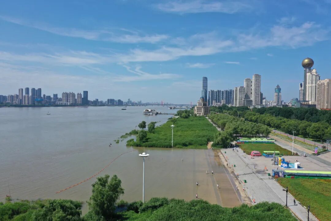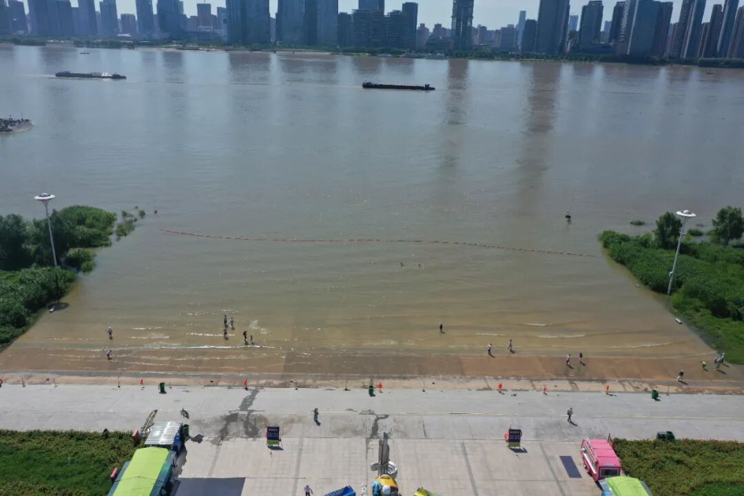 △拍摄于6月30日。江水涨到了横渡长江博物馆亲水平台边缘