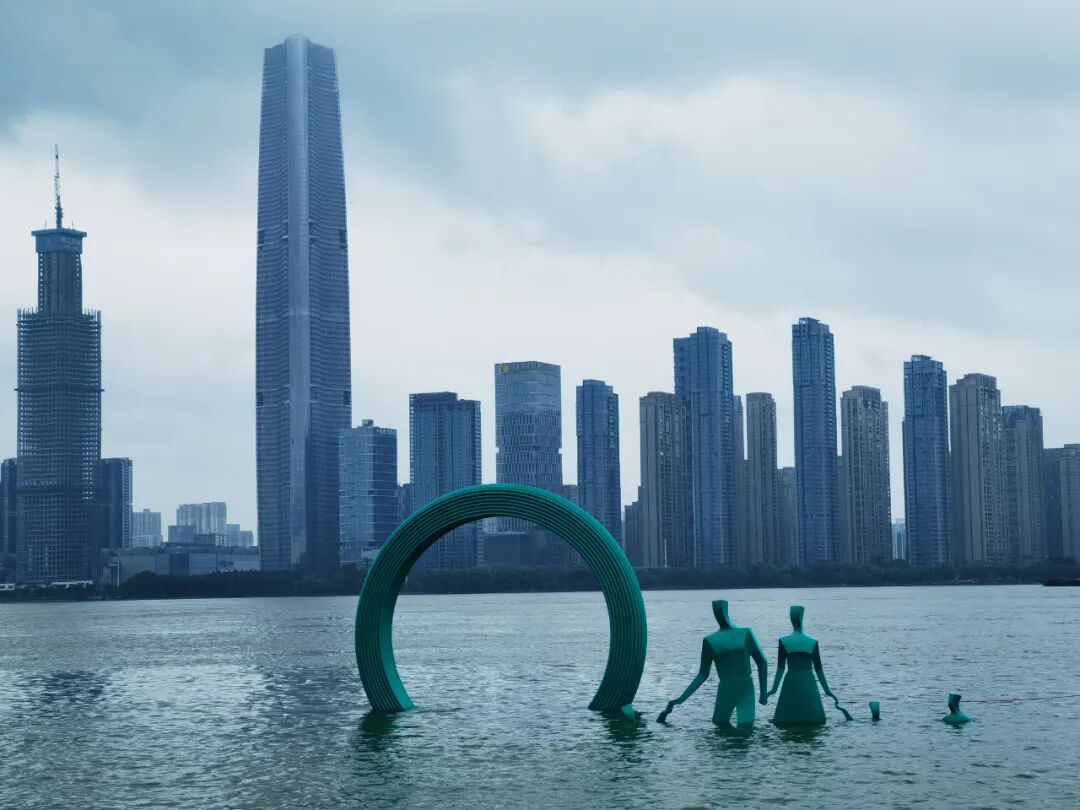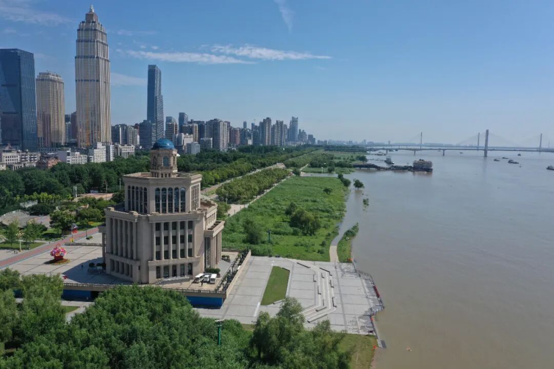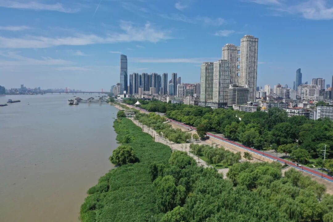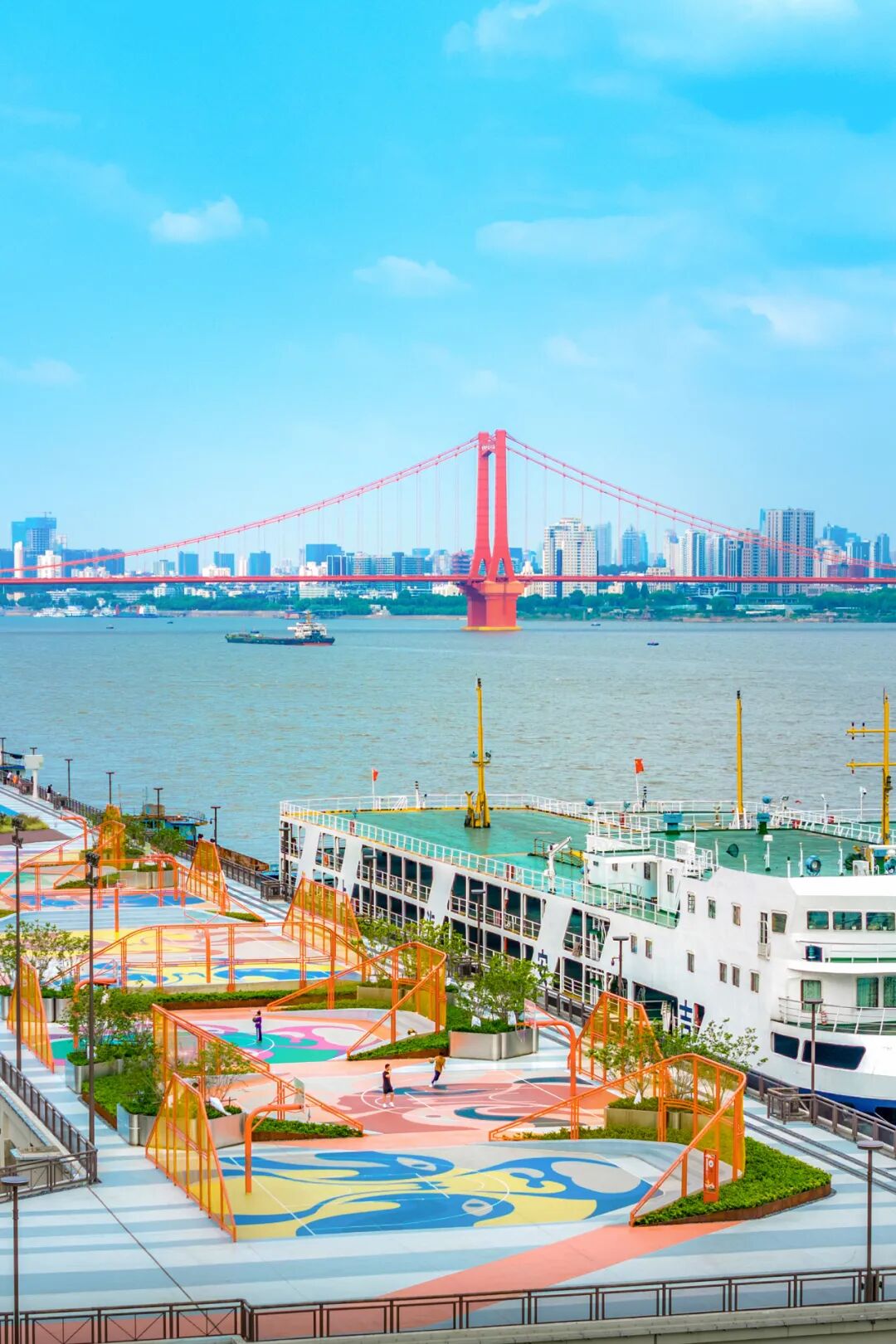 △拍摄于6月30日。江水涨到了横渡长江博物馆亲水平台边缘