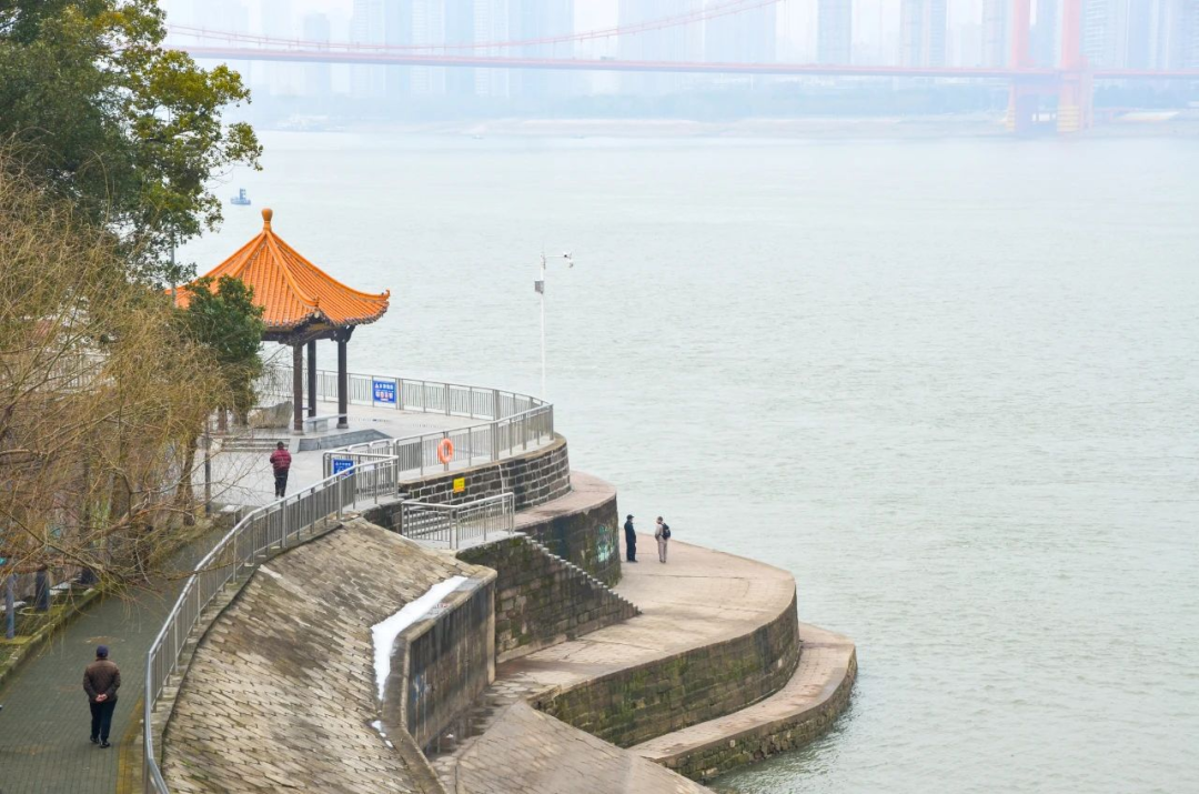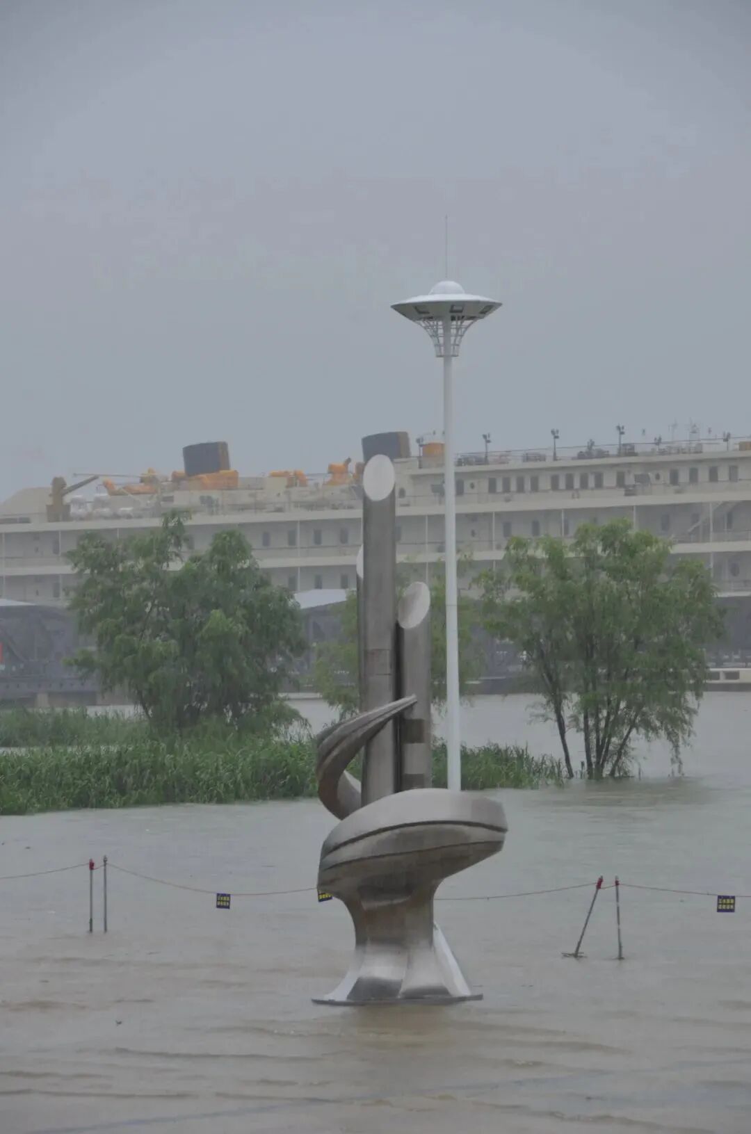 △拍摄于6月30日。江水漫上三阳广场23米亲水平台