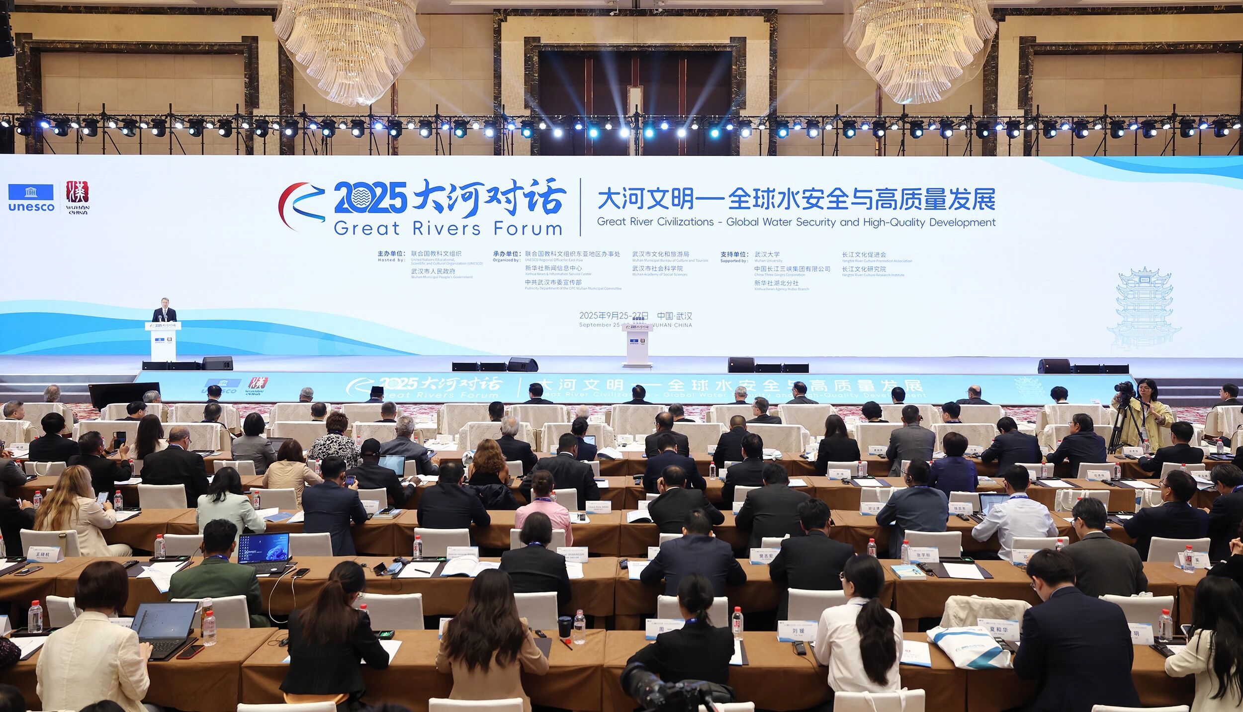9月26日上午,由联合国教科文组织、武汉市人民政府共同主办的2025“大河对话”在武汉开幕。省委书记、省人大常委会主任王忠林致辞。新华通讯社党组书记、社长傅华致辞并发布智库成果《新时代长江治理的成就启示与世界意义》。联合国教科文组织副总干事曲星,印度尼西亚驻华大使周浩黎,中国三峡集团党组书记、董事长刘伟平致辞。
