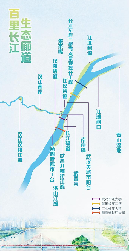 从汉口江滩的繁华起步,经杨泗港的活力迸发,过武昌湾的文化传承,历洪山江滩的野趣悠然,至南岸嘴的战略留白……百里长江生态廊道在这个黄金周首次画圆。