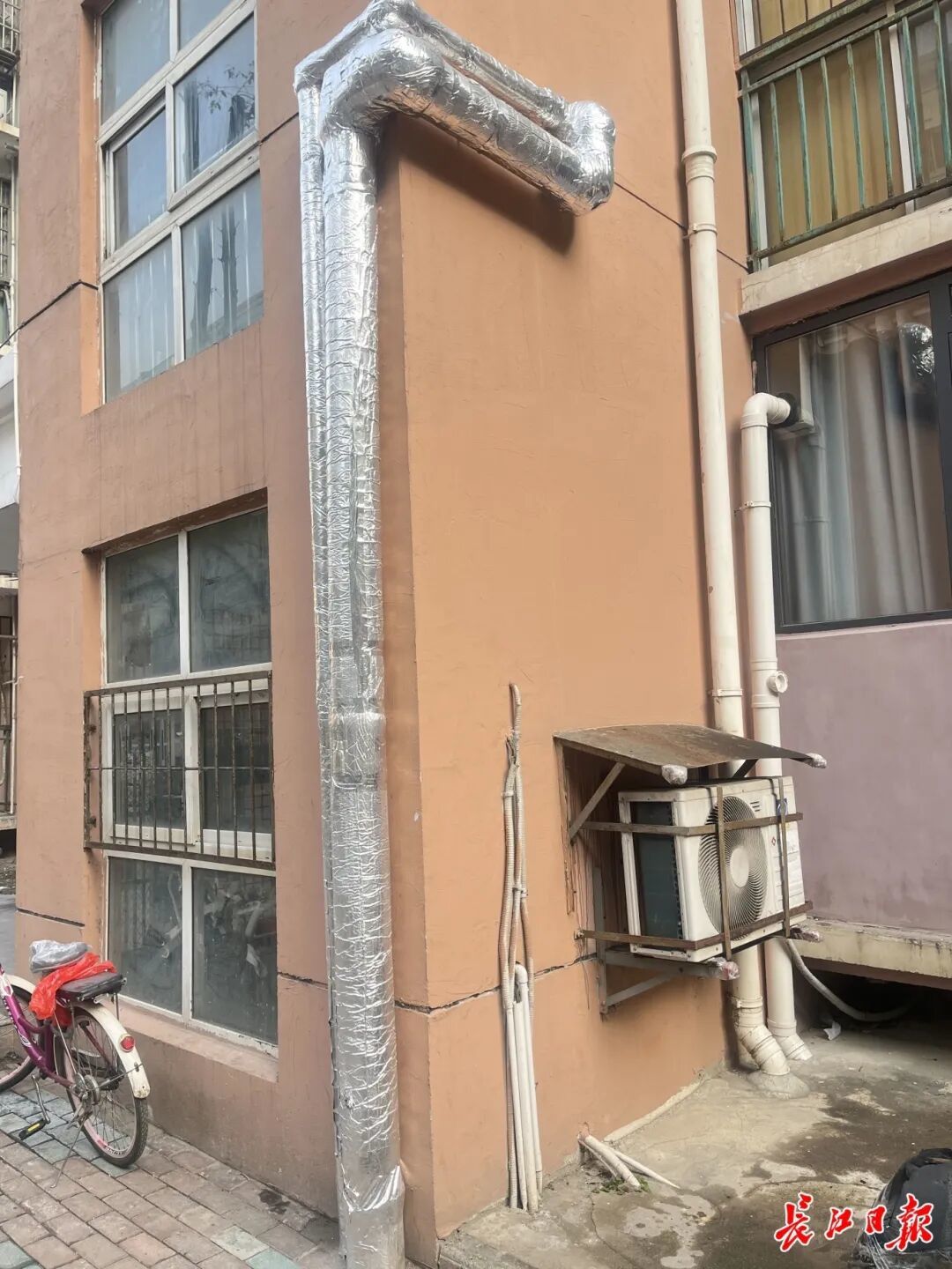 才华茗苑新换管道已经穿上了“防冻棉衣”。