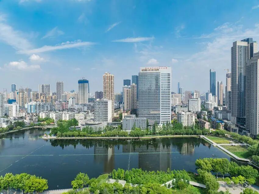 武汉中心书城毗邻江汉区菱角湖,串联唐家墩万达商圈,形成“湖泊公园+文体+商业”的“湖城”相嵌的跨界联动模式。近年来,江汉区通过对菱角湖系统性生态治理与产业联动,该湖泊获评2024年度武汉市美丽河湖优秀案例,并入选武汉市“市级幸福河湖”名录,湖泊公园已从单一景观水体公园转型为“生态基底+经济引擎+文化地标”的复合型城市空间。