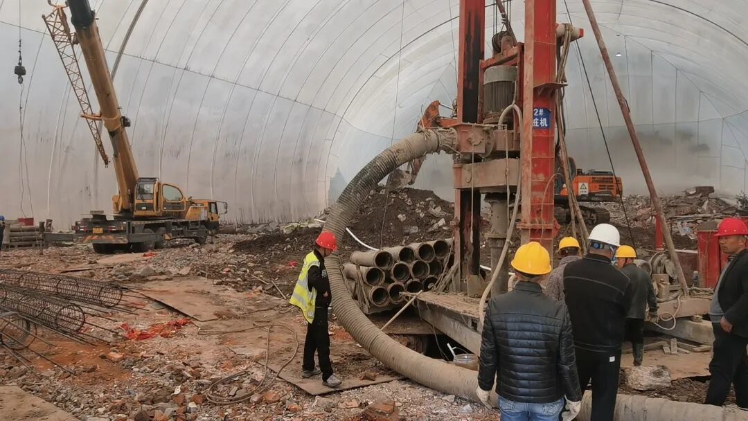 “球体是气膜结构,高22米,它将施工工地整体罩住,机械设备和人员全在里面施工作业。”施工方武汉控股公司水务建设工程有限公司现场负责人卢刘洋说,施工进入拆除4000平方米原有3层办公区楼房的收尾阶段,即将进入下挖工序,“双层中空膜体+阻尼吸音夹层”结构,可使施工噪音衰减60%以上,密闭空间内的智能喷淋系统配合负压过滤技术,扬尘捕获率超99%,真正实现了“施工不见尘、作业不闻声”。