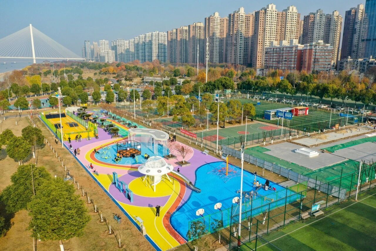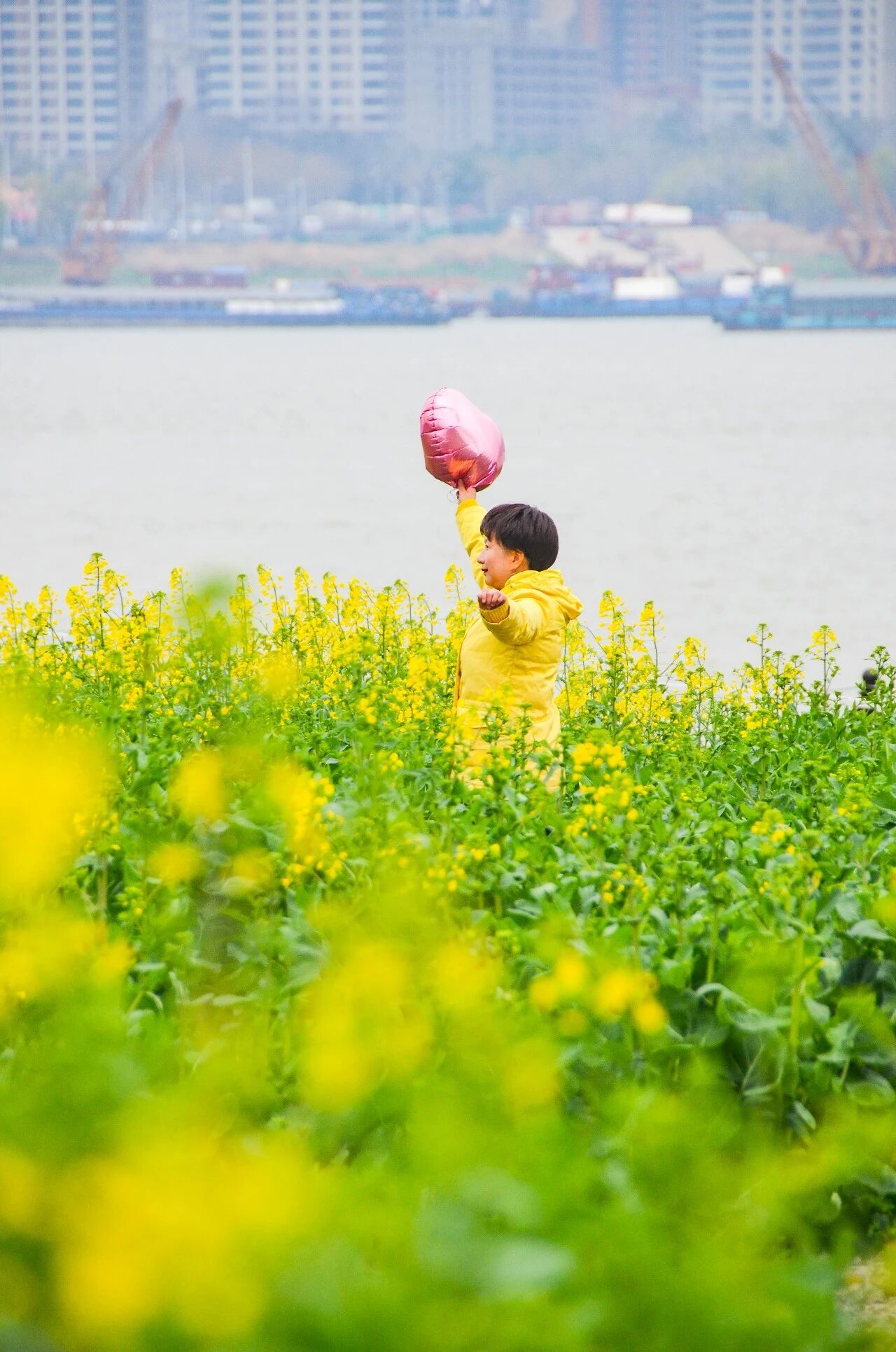 油菜花田附近,有「武昌江滩体育公园」和「武昌江滩儿童乐园」,遛娃、健身一站式搞定,非常适合全家春游,在春日里尽情享受亲子时光与运动乐趣。