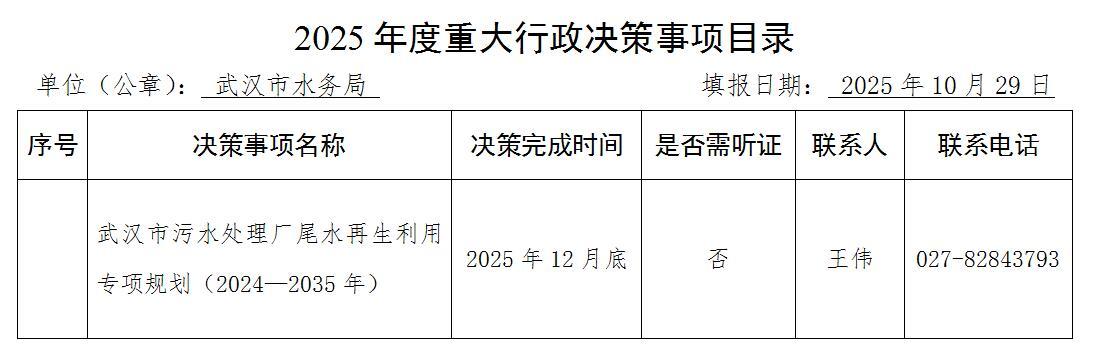 2025年度重大行政决策事项目录
